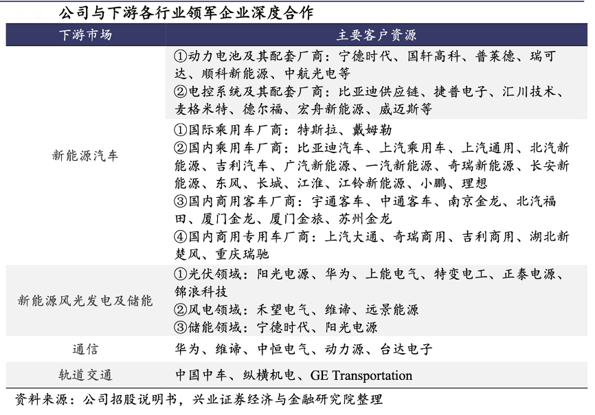 經(jīng)典案例:根據(jù)公司招股說明書、興業(yè)證券經(jīng)濟(jì)與金融研究院等綜合資訊表明,在新能源汽車市場,伴隨著新能源整車與電池行業(yè)競爭集中度不斷提升,中熔電氣公司與下游頭部企業(yè)深度合作,有助實(shí)現(xiàn)業(yè)績的跨越性增長。此外,風(fēng)光發(fā)電及儲能市場客戶包括華為、陽光電源等,通信客戶包括華為、維諦等,軌交客戶包括中國中車、縱橫機(jī)電等。
