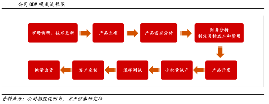 經典案例:根據公司招股說明書、方正證券研究所等綜合資訊表明,面對全球科技和消費電子行業領先客戶,安聯銳視公司主要采取 ODM 為主的經營模式。ODM 模式可使公司根據行業技術發展、市場需求情況來自主設計和研發產品線,根據客戶對產品構造、功能和系統的需求提供視頻監控產品及解決方案,以及相關設計研發和生產制造。公司境內銷售保留少量 OBM 銷售模式,主要面向國內客戶。