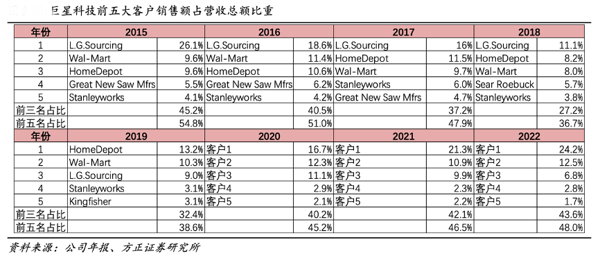 經(jīng)典案例:根據(jù)公司年報、方正證券研究所等綜合資訊表明,目前,巨星科技公司已成為美國 HOME DEPOT、美國 WALMART、美國 LOWES、歐洲 Kingfisher、加拿大 CTC 等多家大型連鎖超市最大的工具和儲物柜(Tools and Storage)供應商之一,并不斷拓展新的產(chǎn)品品類。目前在全球范圍內(nèi),有 20000 家以上的大型五金、建材、汽配等連鎖超市同時銷售公司的各類產(chǎn)品,保證了公司各類創(chuàng)新型產(chǎn)品的高速發(fā)展。