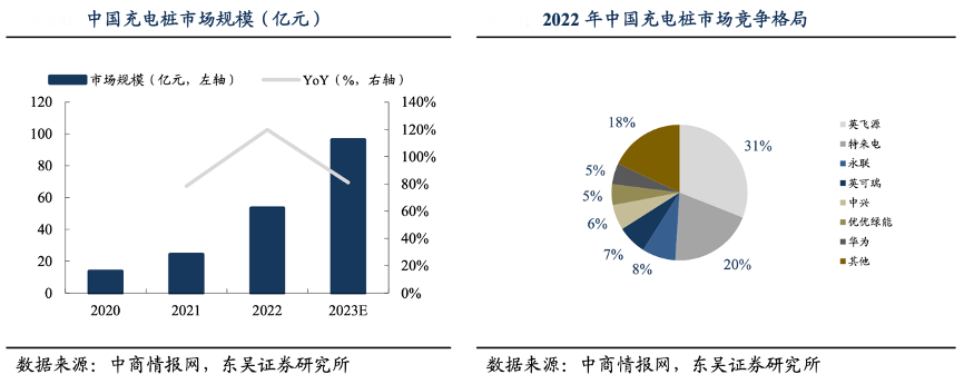 經(jīng)典案例:根據(jù)中商情報網(wǎng)、東吳證券研究所等綜合資訊表明,中國充電樁市場在 2023 年預計超過 96 億元,同比增長 81%。2022 年國內(nèi)充 電樁市場英飛源市場份額超 30%,國產(chǎn)廠商份額提升空間廣闊。公司依托既有的品牌優(yōu) 勢,已成為華為、小鵬汽車等知名品牌合格供應商,2023 年上半年已成為國內(nèi)知名新能源電池企業(yè)合格供應商,并取得訂單,新客戶擴展穩(wěn)步進行。