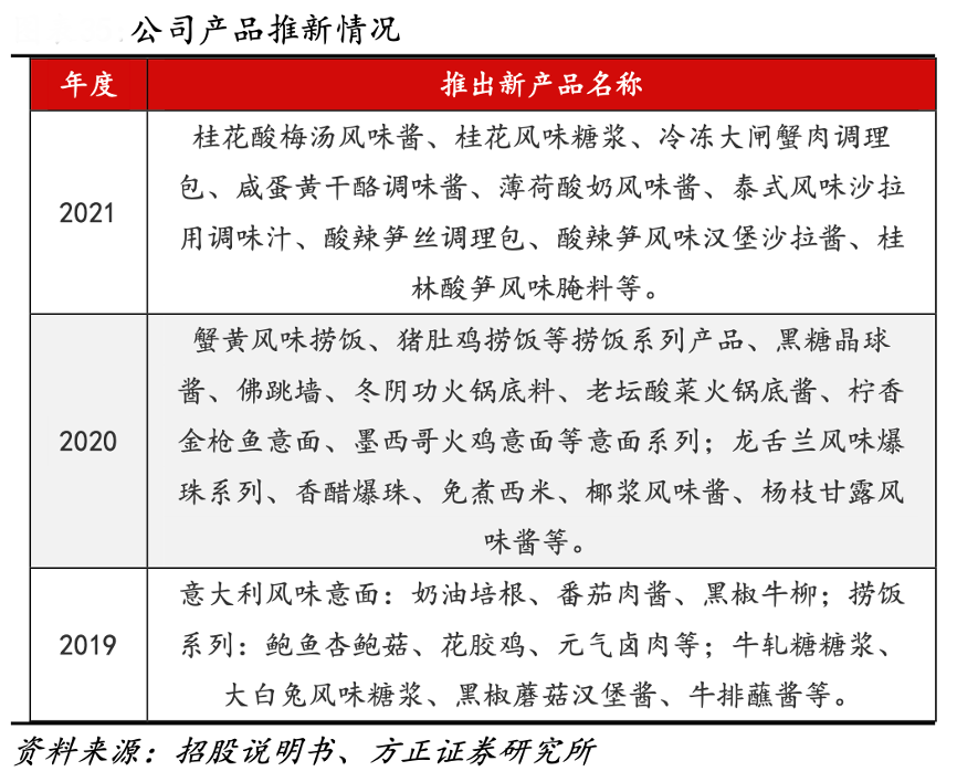經(jīng)典案例:根據(jù)招股說明書、方正證券研究所等綜合資訊表明,寶立食品公司跟蹤市場和消費者偏好的轉(zhuǎn)化,每年推出大量獨具創(chuàng)意的新產(chǎn)品,產(chǎn)品范圍覆蓋中式和西式復合調(diào)味品。公司曾率先將傳統(tǒng)的藤椒風味、避風塘風味和麻辣小龍蝦等多種風味進行工業(yè)標準化生產(chǎn), 引領餐飲連鎖行業(yè)的中國本土化的風味潮流。