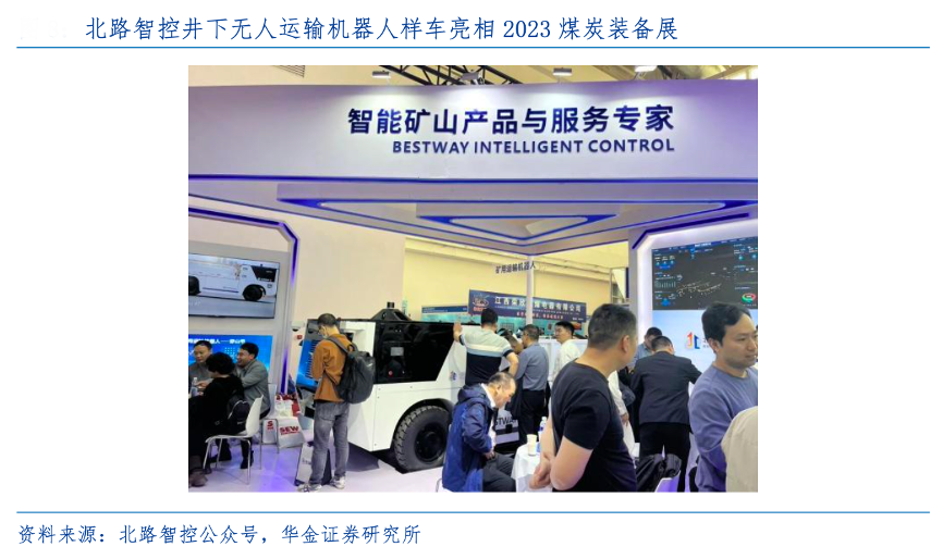 經典案例:根據北路智控公眾號、華金證券研究所等綜合資訊表明,北路智控公司在 2023“第二十屆中國國際煤炭采礦技術交流及設備展覽會”亮相井下無人運輸機器人 “穿山甲”,該款運輸機器人深度融合 5G、數字建模、無線通信、UWB 精準定位、機器視覺、慣性導航等技術,采用全時四驅、雙向行駛的獨特設計和智能操作系統,實現對無衛星導航、空間狹小、防爆要求高、工況復雜條件下的井下環境 360°全方位感知與障礙物識別,達到井下無人化物料運輸的無人駕駛、路徑規劃與車路協同,在井下部分沒有無線網絡或無線網絡覆蓋不全、信號質量不好的場景下,也可不依賴于網絡數據信息脫網運行,實現單車智能。
