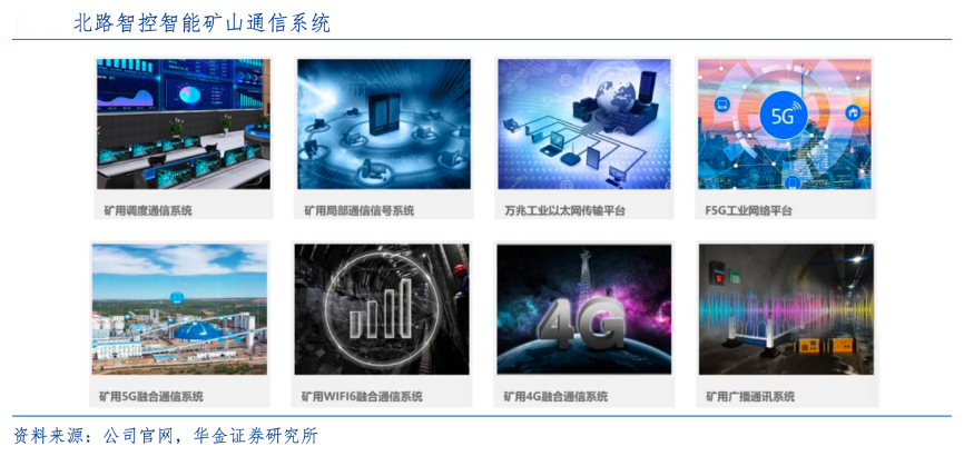經典案例:根據公司官網、華金證券研究所等綜合資訊表明,北路智控針對煤礦生產工作環境的特殊性,其智能礦山通信系統向下游客戶提供高抗擾性、高安 全可靠性的信息傳輸、語音通信、交互聯動等,為煤礦信息化、智能化建設提供基礎性支撐。包括煤礦井下一體化通信系統,進一步實現了井下人員、車輛、信息礦燈等設備終端的信息融合聯動,實現多網融合調度通信。