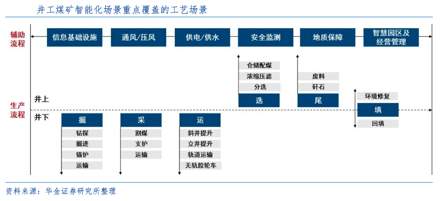 經(jīng)典案例:根據(jù)華金證券研究所等綜合資訊表明,北路智控針對(duì)井工煤礦,智能化建設(shè)場(chǎng)景重點(diǎn)覆蓋“掘- 采 - 運(yùn) - 選 - 尾 - 填”及地質(zhì)保障、壓 風(fēng)/通風(fēng)、供電/供水、安全監(jiān)測(cè)、信息基礎(chǔ)設(shè)施、智慧園區(qū)及經(jīng)營(yíng)管理等關(guān)鍵環(huán)節(jié),實(shí)現(xiàn)無(wú)人少人、效率提升、精益化管理、安全管控等全面提升。