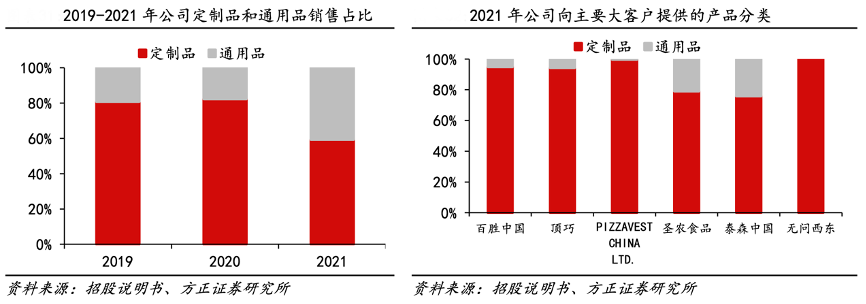 經典案例:根據招股說明書、方正證券研究所等綜合資訊表明,2019年和2020年,寶立食品公司收入中超過80%均為定制品,說明公司定制化程度高,可以為大 B 客戶根據自身場景量身定制新品,利于提升各大連鎖餐飲品牌推新速度,公司憑借此優勢與客戶建立了長期穩定的合作關系。