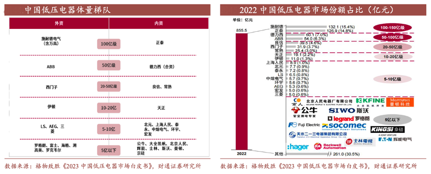 經典案例:根據格物致勝《2023中國低壓電器市場白皮書》、財通證券研究所等綜合資訊表明,以正泰電器、良信股份為代表的內資企業,在地產、工業 OEM 等領域繼續搶占外資市場份額,進一步壓縮中小品牌外資企業市場空間。施耐德電氣作為傳統的外資強勢品牌,通過能效管理和數字化在眾多下游行業賽道固守自己的領域和份額。