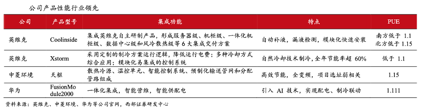 經(jīng)典案例:根據(jù)英維克、申菱環(huán)境、華為等公司官網(wǎng)、西部證券研發(fā)中心等綜合資訊表明,英維克公司液冷解決方案節(jié)能高效,高度集成,性能行業(yè)領(lǐng)先,其集成自主研制的冷板、管路、快速接頭、漏液檢測(cè)、Manifold、CDU、液冷工質(zhì)、 液冷系統(tǒng) BA、高效室外冷源等產(chǎn)品,形成服務(wù)器級(jí)、機(jī)柜級(jí)、一體化機(jī)柜級(jí)、數(shù)據(jù)中心級(jí)和風(fēng)冷散熱級(jí)等 6 大集成交付方案。