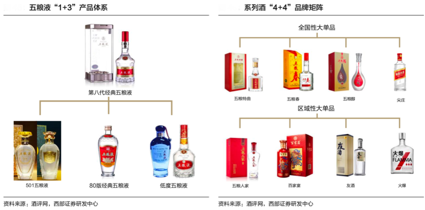 經(jīng)典案例:五糧液是國內(nèi)知名的白酒品牌,其2019 年營銷改革初見成效,進(jìn)一步強化和提升五 糧液主品牌“1+3 戰(zhàn)略”,除了主力產(chǎn)品八代經(jīng)典五糧液,還要重點運作超高端五糧液——501 五糧液(明池、清池)、80 版經(jīng)典五糧液、39 度經(jīng)典五糧液,預(yù)計其后正式投放 501 五糧液,完善品牌架構(gòu)。