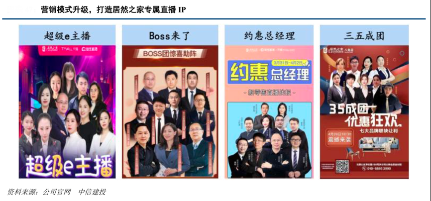經典案例:根據公司官網、中信建投等綜合資訊表明,居然之家全國超 310 家門店借助淘寶直播等渠道開展了數萬場直播,為門店蓄客十余萬人。