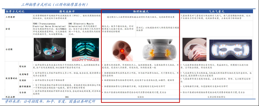 經(jīng)典案例:根據(jù)公司官網(wǎng)、國盛證券研究所等綜合資訊表明,倍輕松公司于 2012 年開創(chuàng)頸部按摩器系列產(chǎn)品。其頸部智能便攜按摩器的主要類型包括揉捏式、環(huán)頸揉捏推拿式、機(jī)械揉捏式及自適應(yīng)充氣揉捏式,適用于工作疲憊、商旅疲勞及休閑放松等多種情景下的個人健康護(hù)理和按摩保 健。2020 年,其頸部智能便攜按摩器實(shí)現(xiàn)收入 2.07 億元,同比增長 19.24%, 占總營收比重為 25.04%。