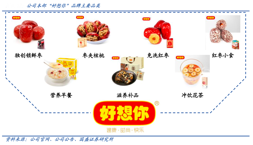 經典案例:根據公司官網、公司公告、國盛證券研究所等綜合資訊表明,好想你公司本部擁有豐富的棗類產品經營經驗,已經形成以鎖鮮棗、棗夾核桃、免洗紅棗以及 紅棗小食為主的多品類產品矩陣,2018 年公司紅棗類產品營收達到 8.68 億元。目前其紅棗類產品主力單品以清菲菲、甜小香、紅小脆、28 度鎖鮮棗為主。