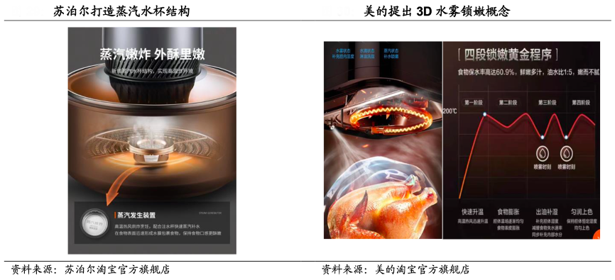 經(jīng)典案例:根據(jù)美的淘寶官方旗艦店、九陽(yáng)淘寶官方旗艦店、國(guó)海證券研究所等綜合資訊表明,部分頭部廠商已經(jīng)將物聯(lián)網(wǎng)技術(shù)應(yīng)用到空氣炸鍋產(chǎn)品,用戶(hù)可以通過(guò)手機(jī) APP 遠(yuǎn)程操控預(yù)約使用,例如九陽(yáng)的“九陽(yáng)健康管家”小程序提供各式各樣的食譜,美的通過(guò)“美的美居”APP實(shí)現(xiàn)遠(yuǎn)程烹飪。