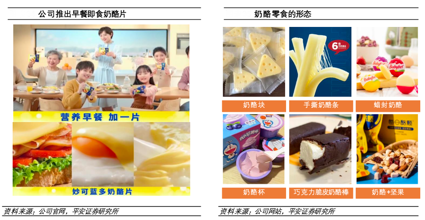 經(jīng)典案例:根據(jù)公司官網(wǎng)、公司網(wǎng)站、平安證券研究所等綜合資訊表明,2021年,妙可藍(lán)多公司在早餐消費(fèi)場景,創(chuàng)新性地推出了香甜口味的奶酪片,為奶酪產(chǎn)品進(jìn)入家庭餐飲開辟了新路徑。該產(chǎn)品與中西式早餐均能搭配,既能添加在西式包點(diǎn)中,也能添加在中式粥品中,提高早餐的營養(yǎng)價(jià)值。