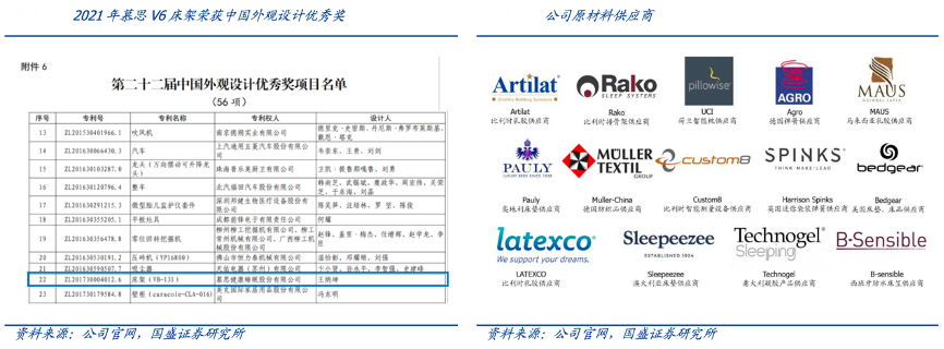 經典案例:根據公司官網、國盛證券研究所等綜合資訊表明,慕斯重視產品研發設計,合作國際知名設計師,創新應用材料與技術。如在設計環節:公司聘請法國知名設計師莫瑞斯(Moris),英國知名設計師馬修(Matthew)作為首席設 計師,以歐洲設計理念,將人體工程學、時尚藝術感和睡眠環境學等要素融入寢具設計, 共同打造符合人體工程學的智能化健康睡眠產品。
