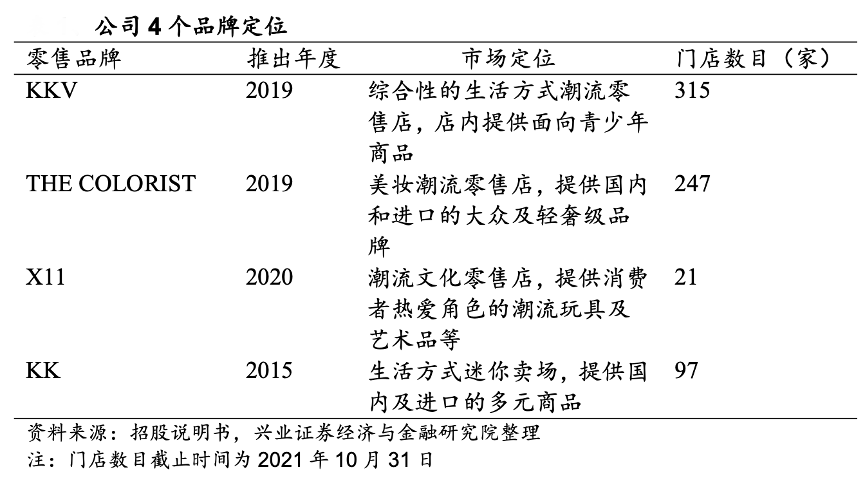 經典案例:根據招股說明書、興業(yè)證券經濟與金融研究院等綜合資訊表明,KK集團公司以“四個零售品牌”向消費者提供橫跨 18 個主要品類中超過 20,000 個 SKU 的各種潮流產品,涵蓋美妝、潮玩、食品及飲品、家居品、文具等所有主要核心生活用品類別,實現廣大的消費者觸及。
