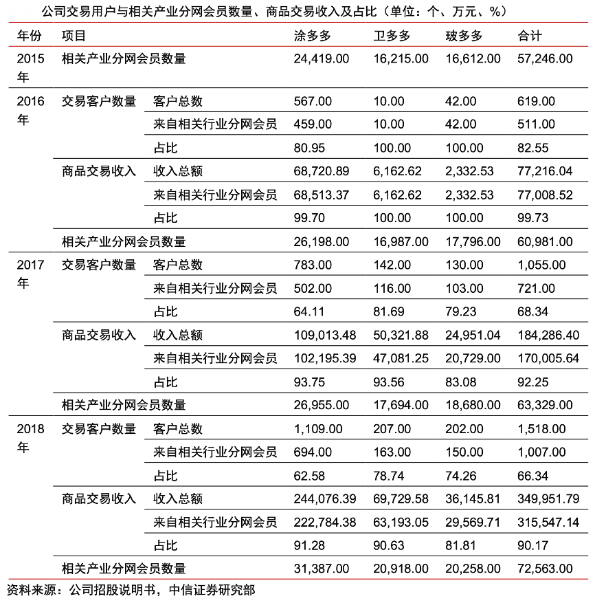 經(jīng)典案例:根據(jù)公司招股說明書、中信證券研究部等綜合資訊表明,國聯(lián)資源網(wǎng)歷經(jīng)十余年的發(fā)展,在垂直產(chǎn)業(yè)鏈積累了深厚的行業(yè)認(rèn)知和上下游資源,錘煉了有深刻行業(yè)理解的團(tuán)隊;多多電商受益于國聯(lián)資源網(wǎng)的用戶的有效轉(zhuǎn)化。在涂多多、衛(wèi)多多、玻多多發(fā)展初期,80%以上的客戶來自國聯(lián)資源網(wǎng)相關(guān)分網(wǎng),且這部分客戶的購買力更強(qiáng),交易額高于平均水平。