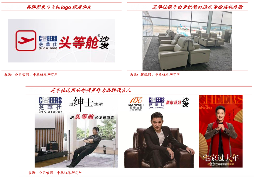 經典案例:根據公司官網、搜狐網、中泰證券研究所等綜合資訊表明,敏華公司深度綁定“飛機頭等艙”進行品牌概念營銷,提出“把頭等 艙帶回家”的口號,并通過類似飛機頭等艙的展示環境來進行產品展示體驗;在品牌 logo 上采用標志性的“飛機”圖案和“頭等艙”文字,并在機場、高鐵等高端商務場所開展營銷活動,如與白云機場合作打造頭等艙候機廳,布局機場安檢框廣告等,形成商務、高端的品牌形象。