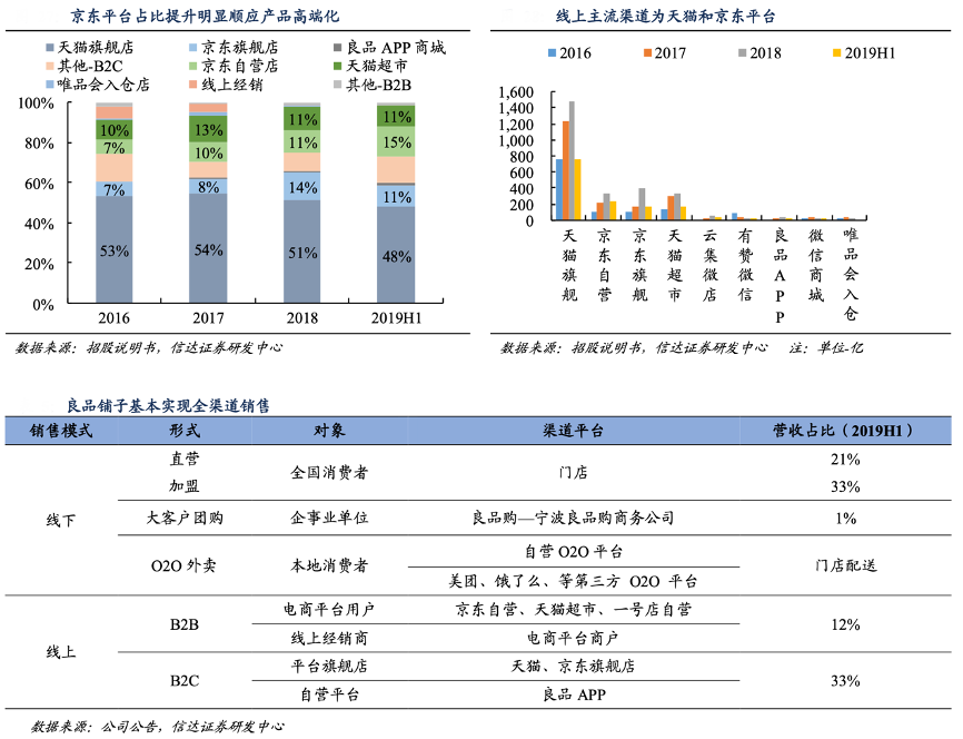 經(jīng)典案例:根據(jù)招股說明書、公司公告、信達(dá)證券研發(fā)中心等綜合資訊表明,良品 2012 年進(jìn)軍線上電商,借 助電商發(fā)展紅利,線上增速快,收入占比持續(xù)提升,2020年實(shí)現(xiàn)營收 40 億元,占比 52%,實(shí)現(xiàn)線上線下全渠道均衡布局。其通過入駐美團(tuán)、餓了么等本地生活服務(wù)平臺,實(shí)現(xiàn)了終端門店的線上化。