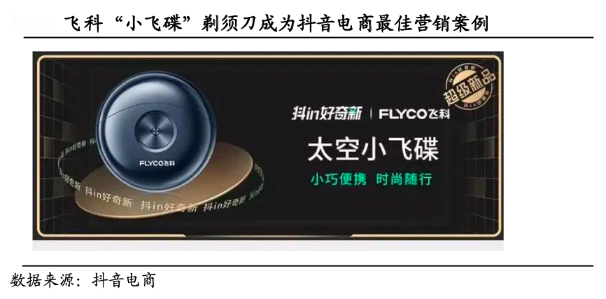 經(jīng)典案例:根據(jù)飛科商城、國泰君安證券研究等綜合資訊表明,飛科積極參與到“抖音超級新品”營銷活動,利用抖音平臺所提供的一對一深度運營方案、流量扶持、達人撮合、營銷宣發(fā)、官方推薦等資源,實現(xiàn)在抖音站內、微博、微信等社交平臺的跨平臺引流,為產(chǎn)品的最大化曝光提供支持。