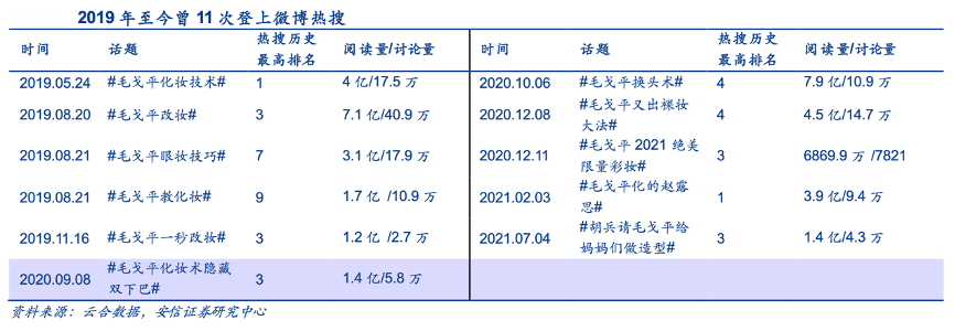 經典案例:根據云合數據、安信證券研究中心等綜合資訊表明,借助社交媒體和社交網站的東風,毛戈平再次“出圈”。入駐微博、小紅書、B 站等平臺,多次和明星、美妝博主合作拍攝化妝視頻,以妝前妝后的明顯對比給觀眾強烈的視覺沖擊。