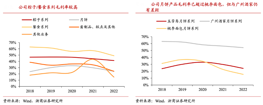 經(jīng)典案例:根據(jù)wind、浙商證券研究所等綜合資訊表明,粽子作為公司第一成長曲線,盈利能力已經(jīng)相對穩(wěn)定,五芳齋公司積極布局節(jié)令烘焙產(chǎn)品,尋找第二增長極。加大月餅、烘焙、速凍等新增品類的產(chǎn)品迭代及動銷,推出中式糕點、預(yù)制菜、休閑鹵味、飯團新品進入市場測試。當前月餅品類規(guī)模快速起量,2022年占比已經(jīng)接近10%左右。