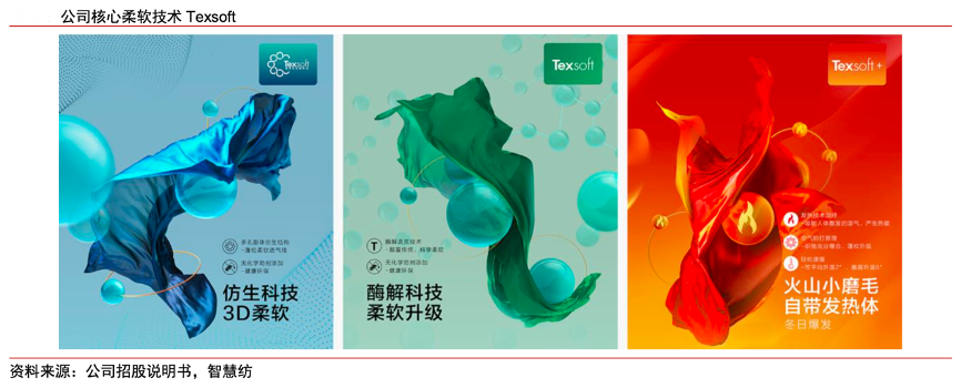 經典案例:根據公司招股說明書、智慧紡、中信證券研究部等綜合資訊表明,床上用品致力于為消費者提供良 好的睡眠體驗,作為貼膚用品,柔軟、透氣等舒適體感是產品核心競爭力。羅萊自主研發 的核心柔軟技術Texsoft 使得產品呈現柔軟蓬松質感,打造具有超柔屬性的特殊產品印記。