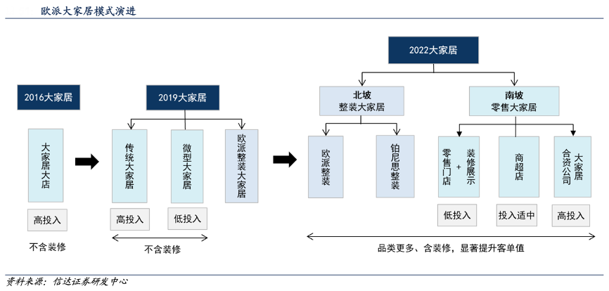 經(jīng)典案例:根據(jù)泛家居圈、信達證券研發(fā)中心等綜合資訊表明,零售大家居按門店形態(tài)分,主要有三種形式:形式一即原有零售門店增加裝修元素,代理商嘗試為主、投入成本較低,門店面積要求不高;形式二為商超店,即零售代理在遠離傳統(tǒng)建材賣場的購物中心開設零售大家居門店,為消費者提供整裝服務;形式三為大家居合資公司,合資公司成立初期可由總部參股投資開設大家居門店。