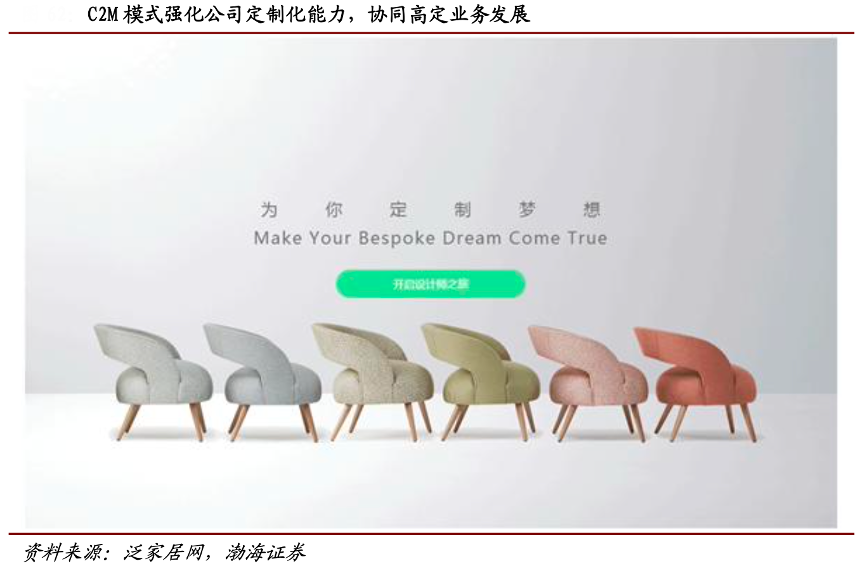 經典案例:根據泛家居網、渤海證券等綜合資訊表明,2017 年,美克家居公司基于已有智能制造基礎,推出線上 C2M 品牌恣在家。C2M 模式下,公司在工廠端打造“零部件超市”,形成 59 個產品平臺 665 個部件和 439 個搭配算法,最終可轉化成 270 萬種可用組件。同時公司通過對產品零部件加載芯片及二維碼標識,實現數字化、智能化制造。