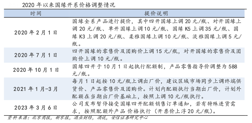 經(jīng)典案例:根據(jù)北京商報(bào)、新京報(bào)、酒業(yè)財(cái)經(jīng)、酒說、安信證券研究中心等綜合資訊表明,今世緣2020 年以來多次調(diào)整開系價(jià)格體系,當(dāng)前四開、對(duì)開仍處于迅速放量階 段。2022 年三季度,今世緣加大四開、對(duì)開系列品牌方面投入,在中秋、國慶雙節(jié)期間策劃了“家國團(tuán)圓 ,共品國緣 ”主題營銷活動(dòng),品牌力增強(qiáng);針對(duì)煙酒店與消費(fèi)者加大反向紅包獎(jiǎng)勵(lì),終端推力提升。