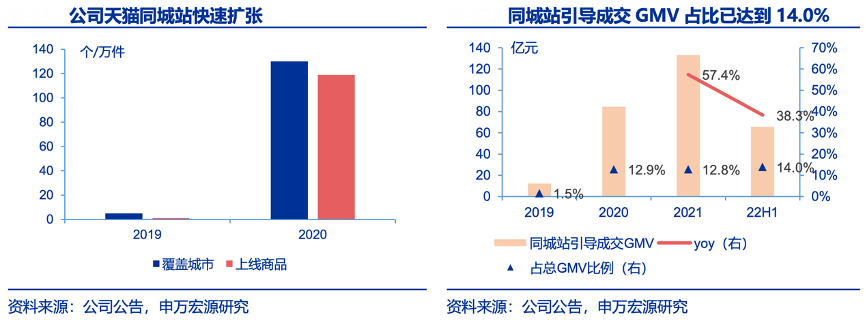經典案例:根據公司公告、申萬宏源研究等綜合資訊表明,居然之家公司與天貓進行合作,將“線上旗艦店”改造為“天貓同城站”,實現了消費者和本地貨品的精準匹配,使之更具本地化特色,進一步推動線上與線下的融合。2019年公司推出天貓同城站,2020年借助原有渠道快速推廣,從年初的覆蓋 5 城快速增長至 2020 年末的 130 城,2022H1 同城站日均訪客 20.6 萬人,同比增長 5%,同城站引導成交 GMV 占總GMV 比例為 14.0%。