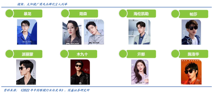 經典案例:根據《2022中國眼鏡行業藍皮書》、國盛證券研究所等綜合資訊表明,太陽鏡除防止太陽強光及紫外線刺激以外,更是作為體現個人時尚品味的配飾,博士眼鏡公司與意大利著名的國際性高端眼鏡產品設計、生產和經銷商霞飛諾集團合作,帶來多品牌的太陽鏡產品體系,2017-2021 公司太陽鏡銷量從 9.9 萬副增長至 18.6 萬副。