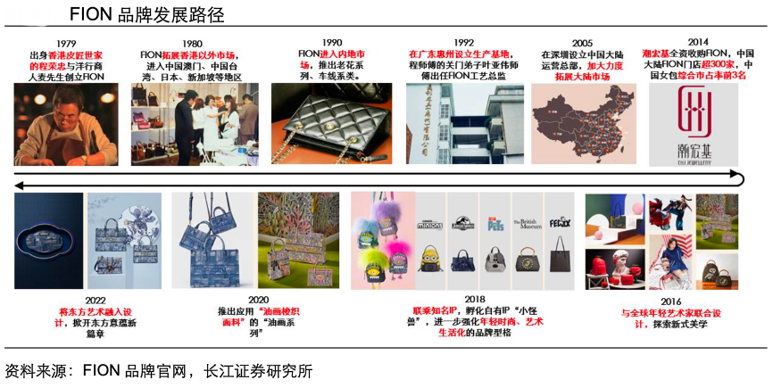 經典案例:根據FION品牌官網、長江證券研究所等綜合資訊表明,潮宏基收購 FION 后,與全球先鋒藝術家合作設計,聯合“小黃人、菲力貓、侏羅紀、 大英博物館”等世界知名 IP 展開推新,并相繼推出自主設計的“小怪獸系列”“油畫系 列”,強化 FION 年輕時尚、藝術化的品牌調性;2022年,在潮宏基珠寶主品牌整體轉向國潮設計風格的趨勢下,FION順勢推出融合東方設計風格的新款油畫系列。