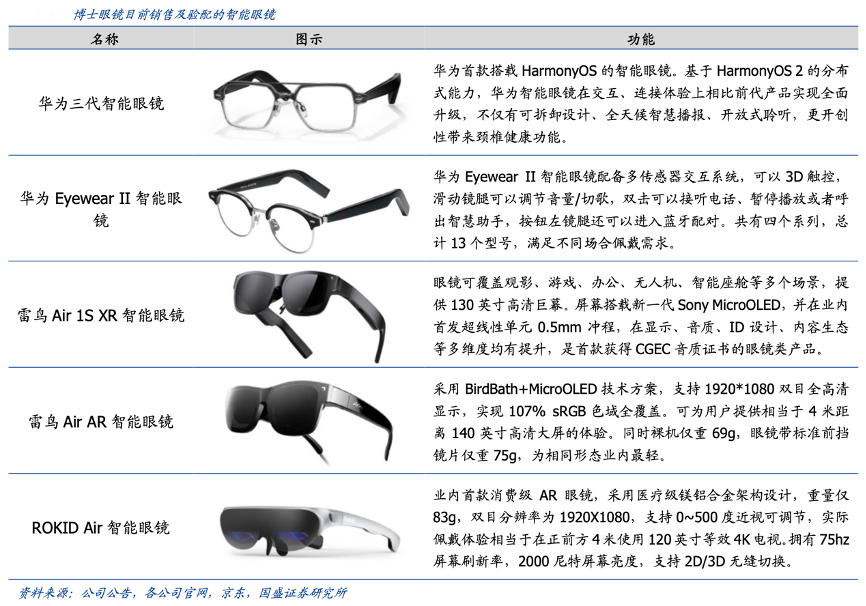 經(jīng)典案例:根據(jù)公司公告、各公司官網(wǎng)、京東、國(guó)盛證券研究所等綜合資訊表明,博士眼鏡公司積極利用數(shù)字化賦能眼鏡產(chǎn)品,將數(shù)字技術(shù)與眼鏡應(yīng)用場(chǎng)景疊加;2022年 5 月,公司與雷鳥創(chuàng)新達(dá)成戰(zhàn)略合作并成立聯(lián)合實(shí)驗(yàn)室,圍繞人體佩戴工學(xué)、光波導(dǎo) AR 眼鏡的近視解決方案進(jìn)行研發(fā)攻關(guān),探索近視鏡片與光波導(dǎo) AR 眼鏡的最佳融合方案。