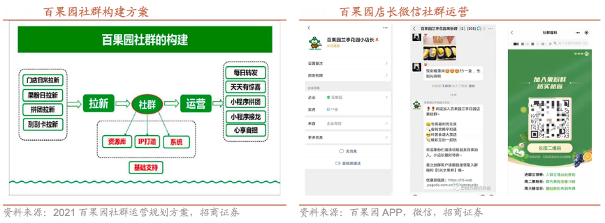 經(jīng)典案例:根據(jù)2021百果園社群運營規(guī)劃方案、百果園APP、微信、招商證券等綜合資訊表明,百果園在會員用戶的深度運營環(huán)節(jié),公司通過 APP、小程序、社區(qū)微信群等多渠道觸達(dá)會員用戶,建立約 2.24 萬個基于門店 的微信群,推送產(chǎn)品促銷及會員活動,共積累超過 870 萬名微信社群粉絲。此外公司利用精準(zhǔn)的營銷系統(tǒng)為用戶進(jìn)行個性化商品推薦,進(jìn)一步提升會員用戶的購買意愿和留存率。