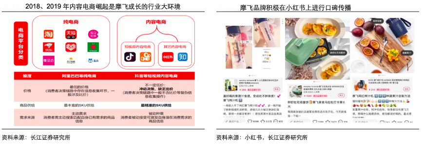 經典案例:根據小紅書、長江證券研究所等綜合資訊表明,摩飛的成功源自兩方面:其一,新寶較強的制造、研發實力,保障了摩飛更為優質的新品實力;其次,作為內容營銷應用的代表,摩飛發展了一批具備新流量營銷能力的代理商矩陣,收獲了較大的內容電商流量紅利。