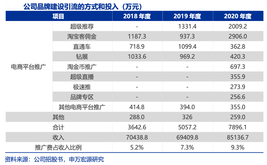 經典案例:根據公司招股書、申萬宏源研究等綜合資訊表明,戎美公司積極跟進淘寶各類營銷活動,參與直通車、超 級推薦、鉆展等活動均取得良好效果,新增淘金幣、超級直播、極速推和品牌專區等活動。2018-2020年,公司超級推薦及淘寶客傭金呈增長之勢。