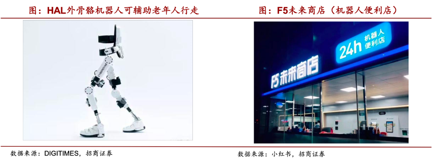 經(jīng)典案例:根據(jù)DIGITIMES、小紅書、招商證券等綜合資訊表明,無(wú)人超市、無(wú)人便利店的產(chǎn)生提高了實(shí)體零售業(yè)智能化數(shù)字化水平,第一家無(wú)人便利店F5未來(lái)商店于2014年落地,截至2021年已開設(shè)60多家門店,利用機(jī)器人自動(dòng)化結(jié)合算法為顧客帶來(lái)高效便利的體驗(yàn),同時(shí)有助于公司降低人力成本開支,將更多的資金投入至擴(kuò)大店面的覆蓋率上,使得大多數(shù)老人的居住地步行范圍內(nèi)均配備便利店及生鮮超市。