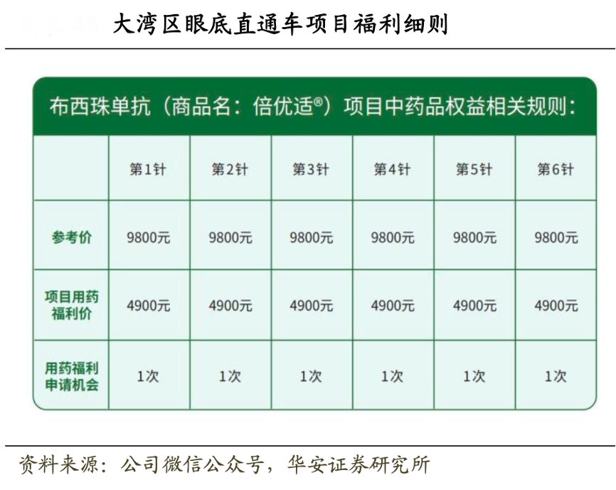 經(jīng)典案例:根據(jù)公司微信公眾號(hào)、華安證券研究所等綜合資訊表明,2022 年 8 月 14 日,由富有臨床經(jīng)驗(yàn)和影響力的眼科專家組成布西珠單抗創(chuàng)新藥物臨床實(shí)踐專家顧問(wèn)團(tuán)正式成立,大灣區(qū)眼底直通車項(xiàng)目同步開啟報(bào)名,將為 100 位評(píng)估適用“布西珠單抗”的患者提供費(fèi)用減免福利,幫助患者減輕治療中的經(jīng)濟(jì)負(fù)擔(dān)。2023 年 7 月 21 日,“布西珠單抗 Beovu”順利在深圳福田?,?、廣州?,斸t(yī)院完成交接。
