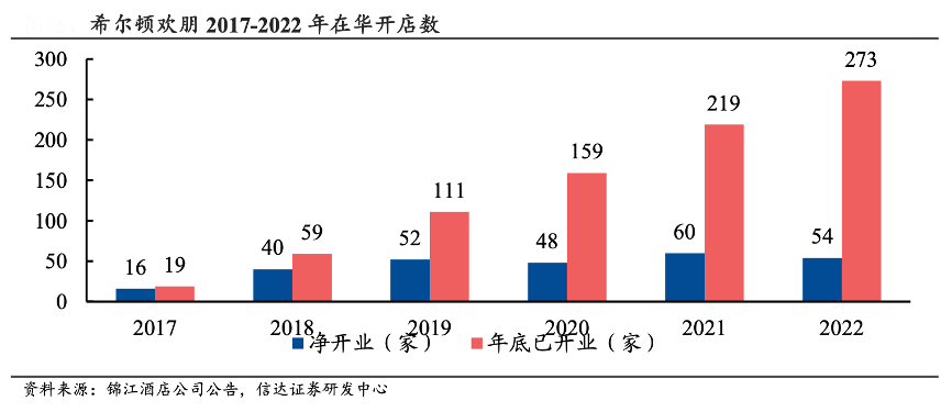 經典案例:根據錦江酒店公司公告、信達證券研究開發中心等綜合資訊表明,進入中國市場九年來,歡朋保持高開店增速,2016-2019 年當年新開業總數分別為 7 家、16 家、40 家、52 家,占當年希爾頓歡朋全球新開業數的比例分別為 5.98%、16.84%、42.11%、46.85%。