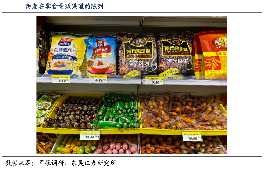 經典案例:根據草根調研、東吳證券研究所等綜合資訊表明,西麥食品積極布局零食量販渠道,與國內各量販品牌均展開合作,2023年公司在線下零食渠道同比增長超過180%,零食量販渠道的快速發展驅動公司線下業務新增量。