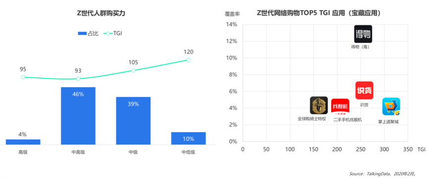 根據(jù)TalkingData等綜合資訊表明,Z世代網(wǎng)絡(luò)購物的應(yīng)用主要集中在得物(毒)、識(shí)貨、掌上道聚城等應(yīng)用方面,其多數(shù)集中在游戲、二手貨等垂直領(lǐng)域,有自己的專屬人群,也有其關(guān)注內(nèi)容,“重度垂直人群”的應(yīng)用更受歡迎。年輕的Z世代并沒有太高的消費(fèi)能力,但在自身興趣(電子產(chǎn)品、潮鞋、游戲道具等)上舍得花錢,這也催生了一批垂直購物的“寶藏應(yīng)用”。
