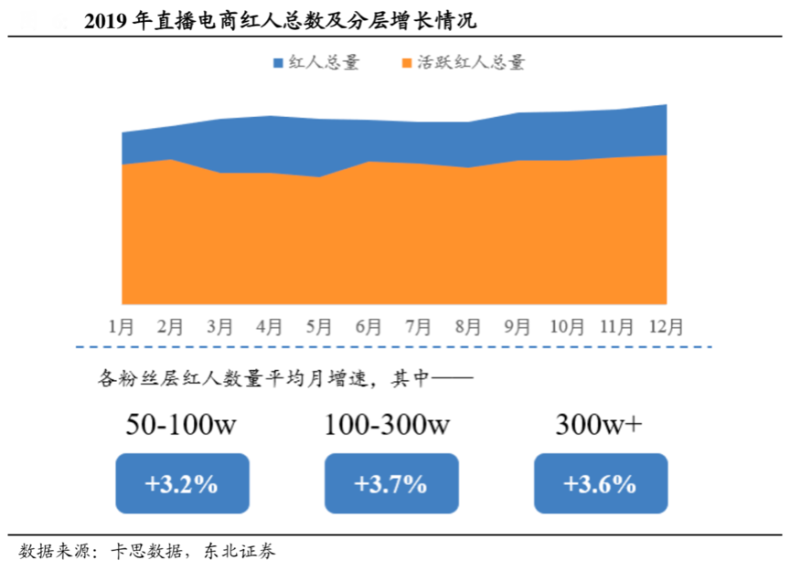品牌商需要培養自己的“品牌主播”和“品牌直播代言人”,強化各直播平臺的品牌化展現,積極培育各品牌自主達人KOL和“店播達人”。根據卡思數據、東北證券等綜合資訊表明,截至2019年年底,僅有33%的達人處于增粉狀態,品牌要想快速發展,就要培育“品牌嫡系紅人”。