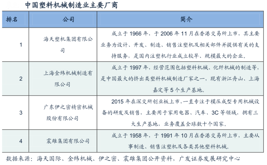 經典事件:根據廣發證券發展研究中心、Bloonberg等綜合資訊表明,全球注塑機市場分層清晰的告訴我們,發達國家憑借其技術和人才優勢,仍然占據著世界塑料成型設備市場的重要地位,如德國、意大利、日本等國的精密、大型、高端塑料機械產品,由于其具有高附加值,市場份額領先。就注塑機行業而言,德國出口占全球的20%以上,是全球注塑機技術領先的象征。大量國內企業依托國際級技術、國際技術國產化等引領著企業發展風潮。