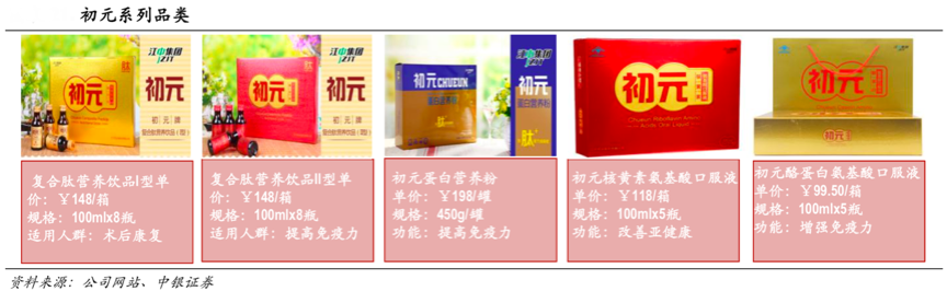 經(jīng)典案例:根據(jù)公司網(wǎng)站、中銀證券等綜合資訊表明,“初元復(fù)合肽飲品”的特色在于其是由海洋魚皮膠原低聚肽、大豆低聚肽、酪蛋白磷酸肽及礦物質(zhì)、枸杞提取物等組成,具有增強(qiáng)體質(zhì),促進(jìn)創(chuàng)口愈合及機(jī)體營養(yǎng)吸收的功效;同時產(chǎn)品細(xì)分全面,產(chǎn)品包括初 元營養(yǎng)飲品 I/II 型、初元酪蛋白、初元核黃素、初元蛋白營養(yǎng)粉等多款產(chǎn)品。
