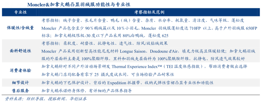 經(jīng)典案例:根據(jù)紡織導(dǎo)報、搜狐新聞及華創(chuàng)證券等綜合資訊表明,Moncler 于 2003年將產(chǎn)品集中在歐洲生產(chǎn),從含絨量、蓬松度、面料彈性等多方面嚴(yán)把產(chǎn)品質(zhì)量;加拿大鵝在眾多品牌將生產(chǎn)線外移時仍堅持本土生產(chǎn)全程手工制作,并通過研發(fā) TEI 指數(shù)等塑造其“專業(yè)品牌形象”。