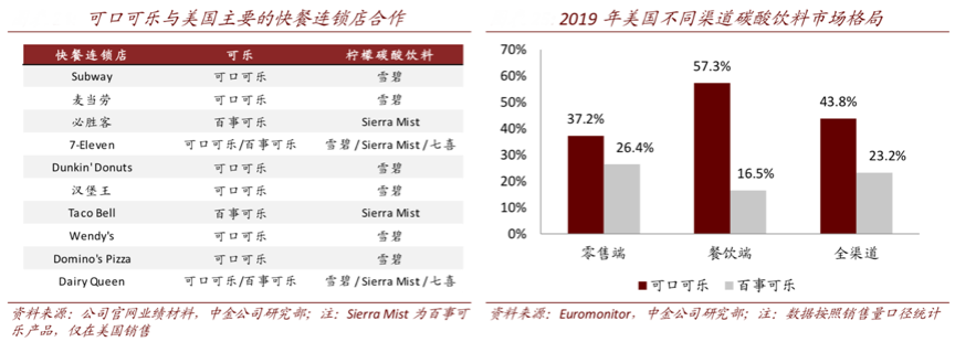 經典案例:根據公司官網業績材料、中金公司研究部、Euromonitor等綜合資訊表明,經過 130 多年的發展,可口可樂建造了世界上最大的飲料分銷系統,在超過 200 個國家或地區銷售可口可樂, 2019 年公司在全球共擁有3,000 萬個銷售網點, 覆蓋了全球約 60%的零售店。