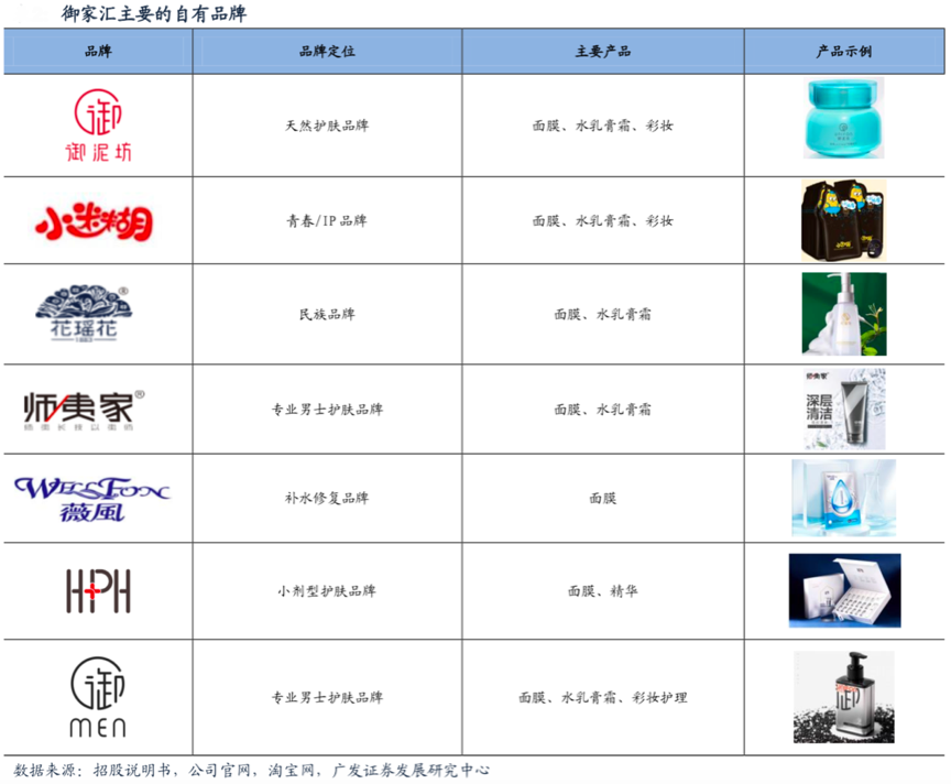經典案例:根據招股說明書、公司官網、淘寶網和廣發證券研究中心等綜合資訊表明,御泥坊公司成立初期主要產業品牌就是“御泥坊”,2014年御泥坊營業收入占比89.0%,同時其旗下有御泥坊、薇風、小迷糊、花瑤花、御MEN等自有 品牌,其中薇風品牌正逐漸升級為“大水滴”。主品牌突出、多品牌組合的“產業品牌矩陣”日益形成。