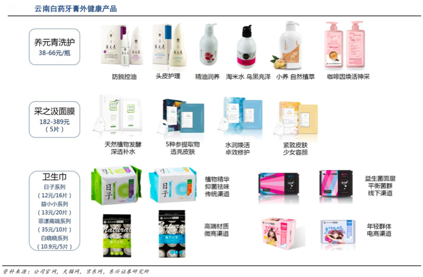 經典案例:根據公司官網、天貓網、京東網和東興證券研究所等綜合資訊表明,云南白藥陸續推出了金口健系列(平衡口腔菌群)、益齒系列(口腔修護)、朗 健系列(煙后修復)、雙效抗敏系列(緩解 牙齒敏感)、漬清系列(粘 膜修復)、兒童牙膏(6-12 歲兒童專用,食用級材料),價格區間 14-65 元,實現了牙膏全功能、中高端價格區間、不同使用群體的廣覆蓋,創造了全方位的“泛健康消費體驗”。