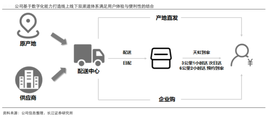 經(jīng)典案例:根據(jù)公司信息、長(zhǎng)江證券研究所等綜合資訊表明,2020年8月天虹超市到家業(yè)務(wù)全新升級(jí),極速達(dá)、次日達(dá)、全國配三大業(yè)務(wù)同步更新上線。公司超市和百貨業(yè)態(tài)均實(shí)現(xiàn)線上線下的融合打通:一方面,通過建立以實(shí)體門店為基礎(chǔ)的本地化、社區(qū)化生活圈,滿足顧客一站式生活所需,2019年天虹超市到家上線門店累計(jì)達(dá) 98 家(含 1 家前置倉),日均訂單量同比增長(zhǎng) 39%;另一方面,通過在線化,打破本地商圈,從單店拓展到區(qū)域乃至全國,商品可實(shí)現(xiàn)區(qū)域協(xié)同和全國共享,2019 年天虹百貨專柜到家的跨區(qū)域銷售占比達(dá) 25%。