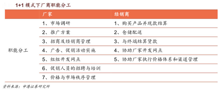 經典案例:根據申港證券研究所等綜合資訊表明,藍色經典推出之初,洋河提出 1+1 深度協銷模式:廠家負責動銷,經銷商負責物流與資金流;廠家承擔市場開拓和銷售環節的風險、推廣品牌的全責,廠商分工明確、戰略性協同。
